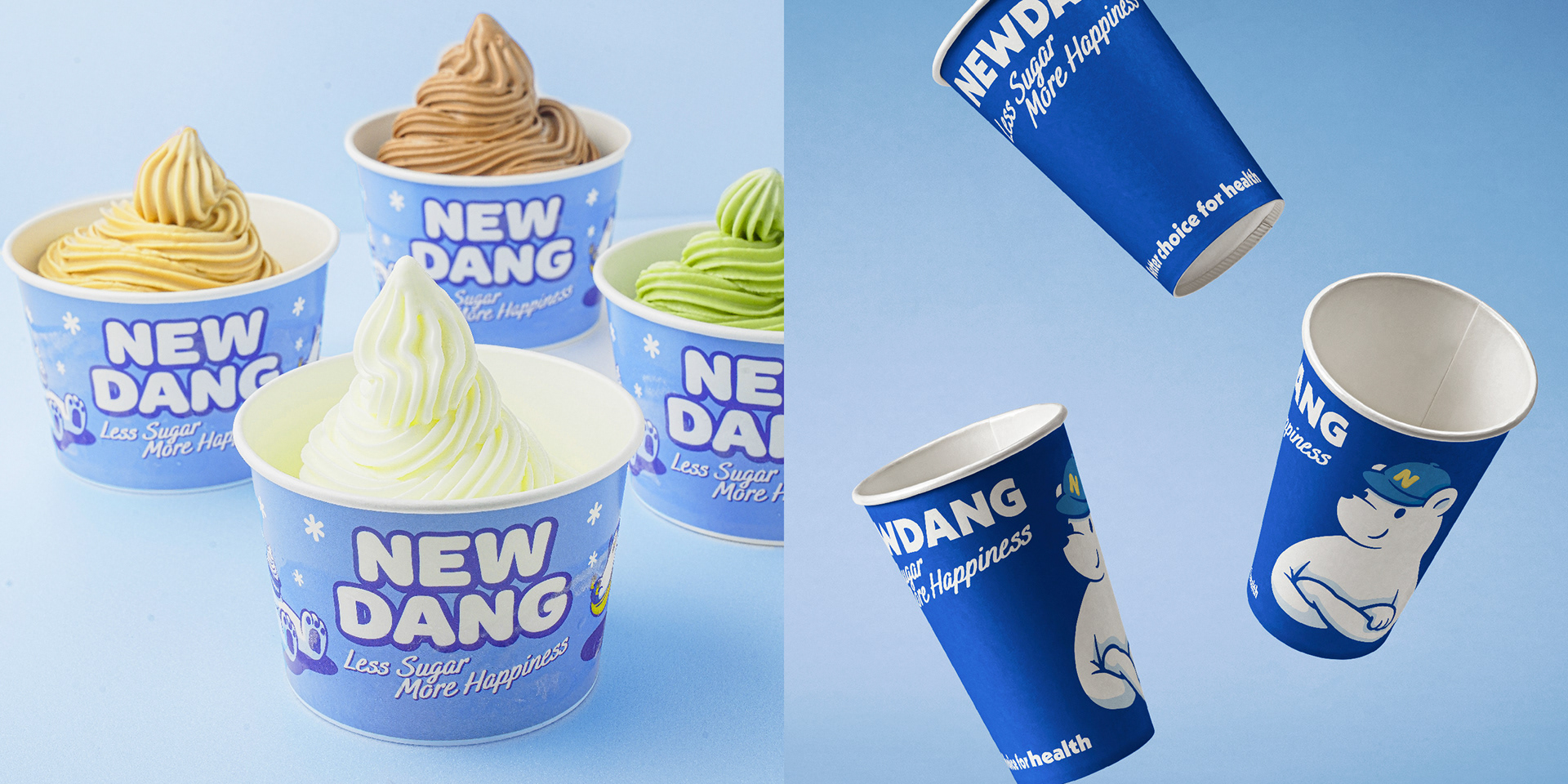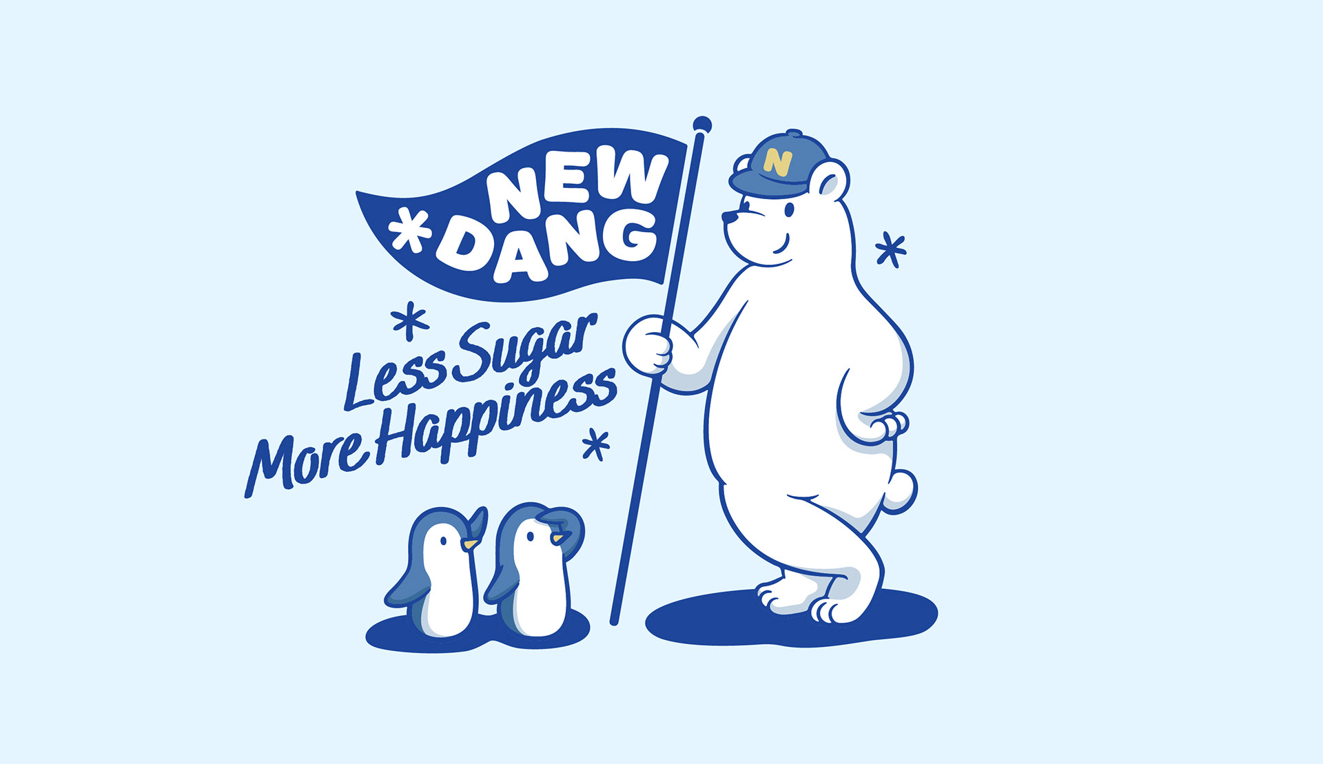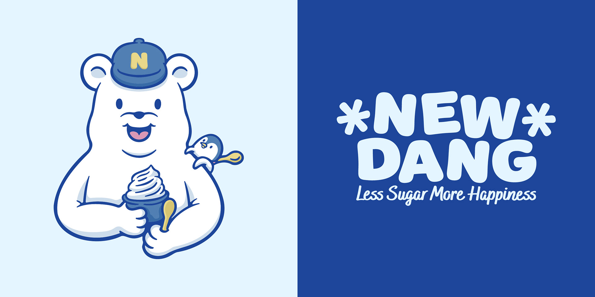 새로운 건강한 디저트를 선보인다는 '뉴당'이라는 이름에 맞게 북극곰이 깃발을 꽂는 이미지를 중점으로 브랜드 이미지를 중점으로 이미지 작업을 진행했습니다.