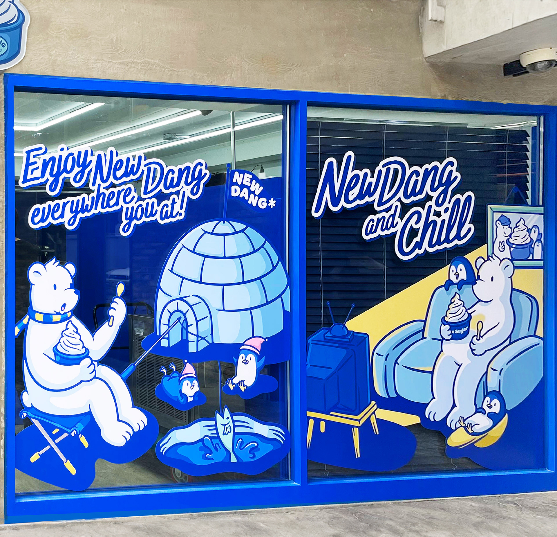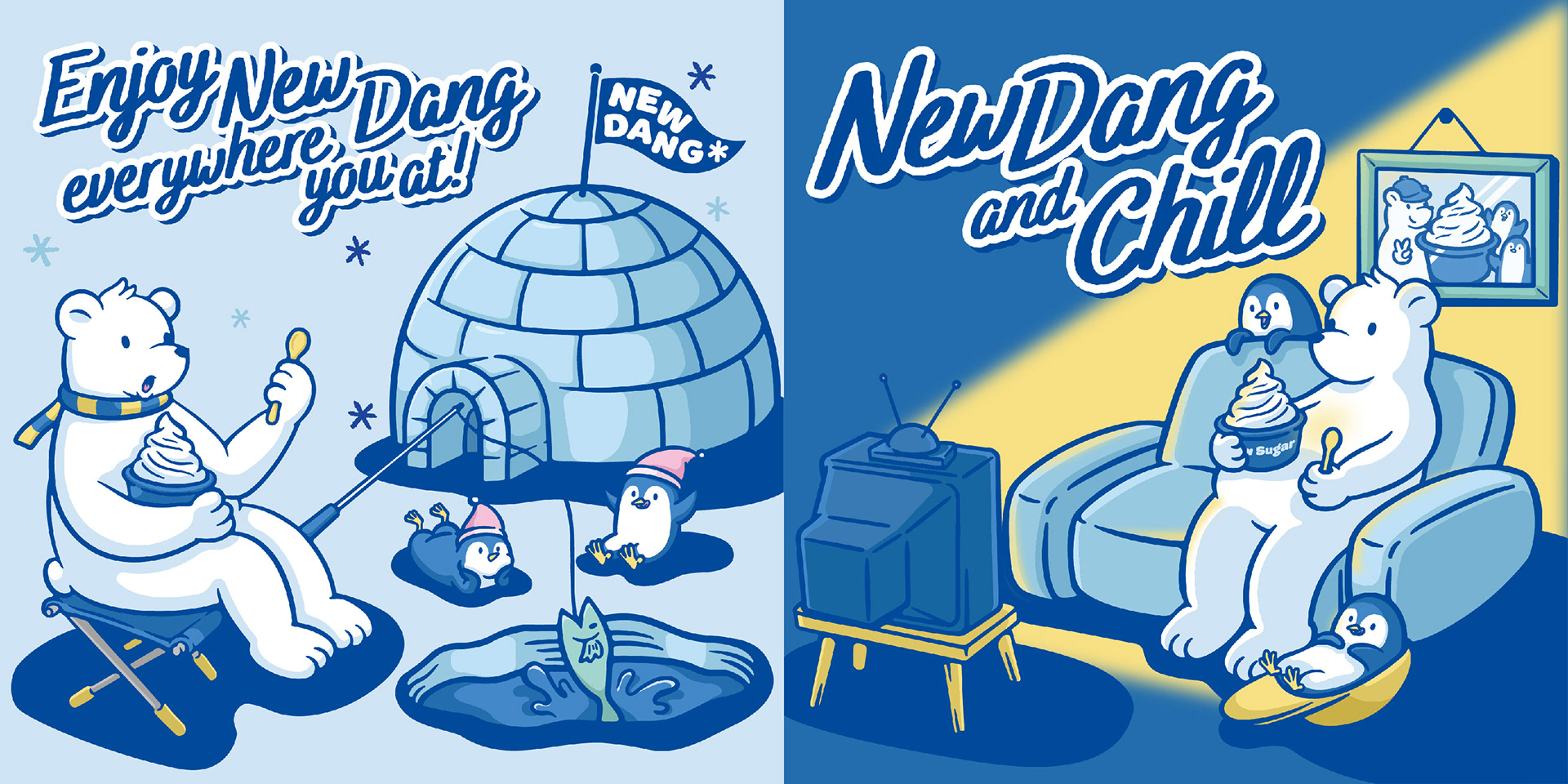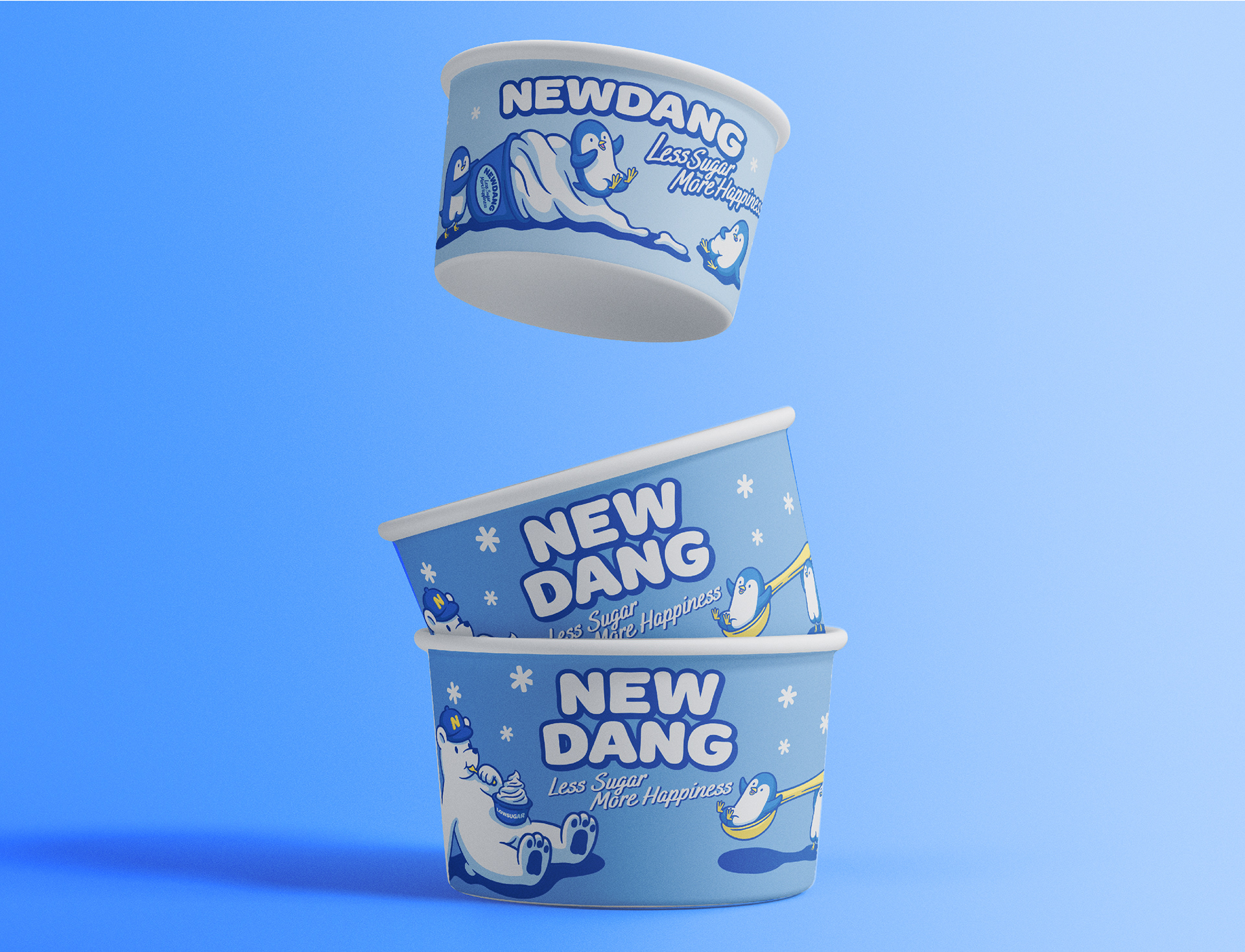 새로운 건강한 디저트를 선보인다는 '뉴당'이라는 이름에 맞게 북극곰이 깃발을 꽂는 이미지를 중점으로 브랜드 이미지를 중점으로 이미지 작업을 진행했습니다.