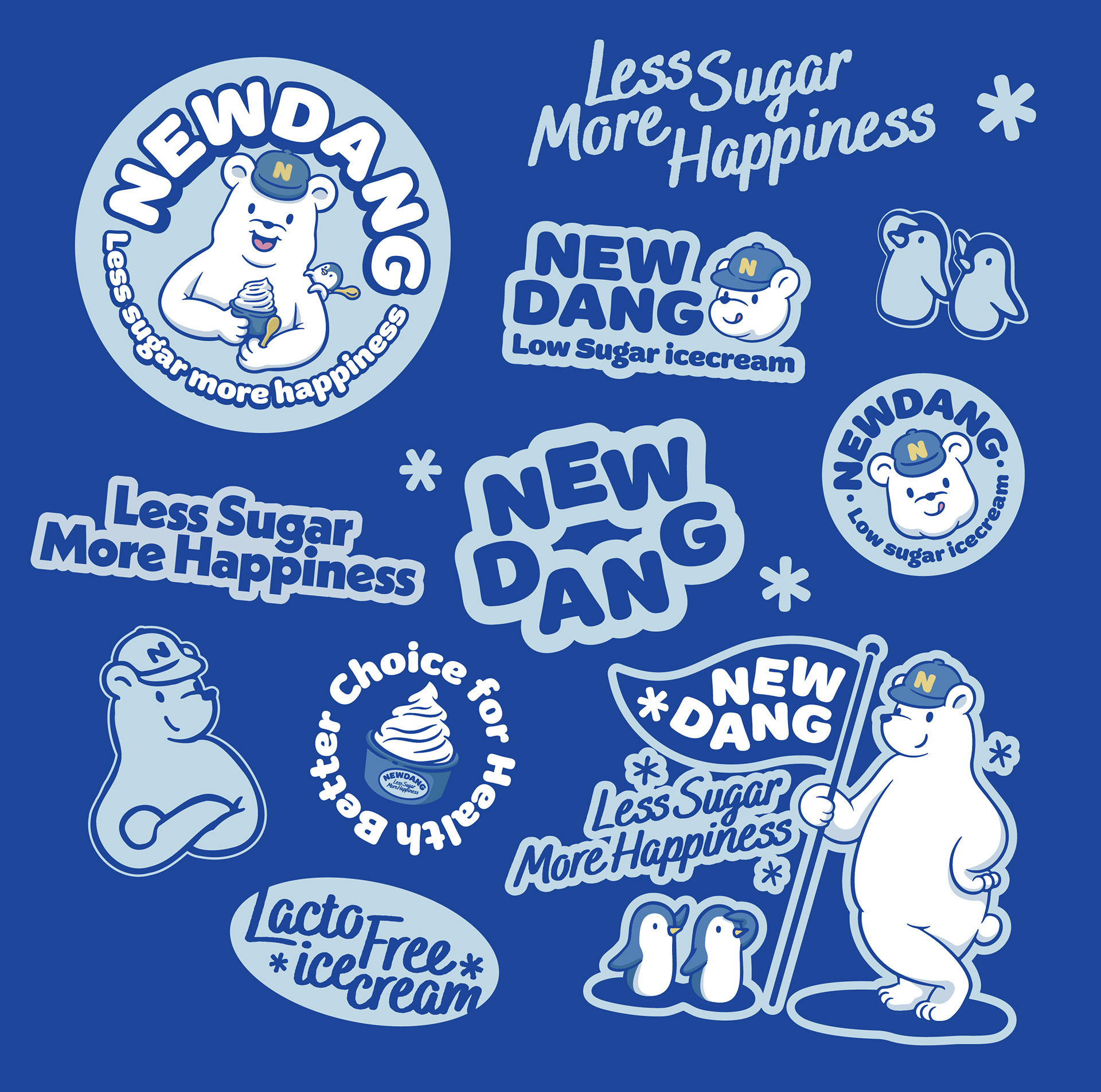 연남동에 오픈한 저당 전문 아이스크림 브랜드 뉴당의 브랜드 아이덴티티의 디자인입니다.